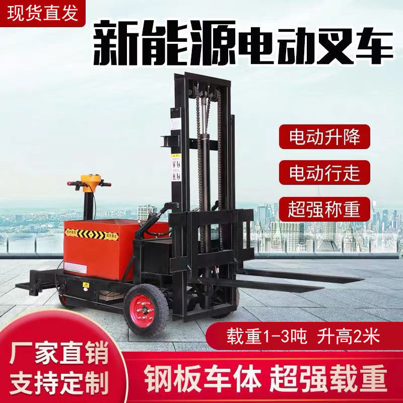 沈丘县小型电动叉车1吨站驾式2吨液压升高铲车全自动仓储堆高车